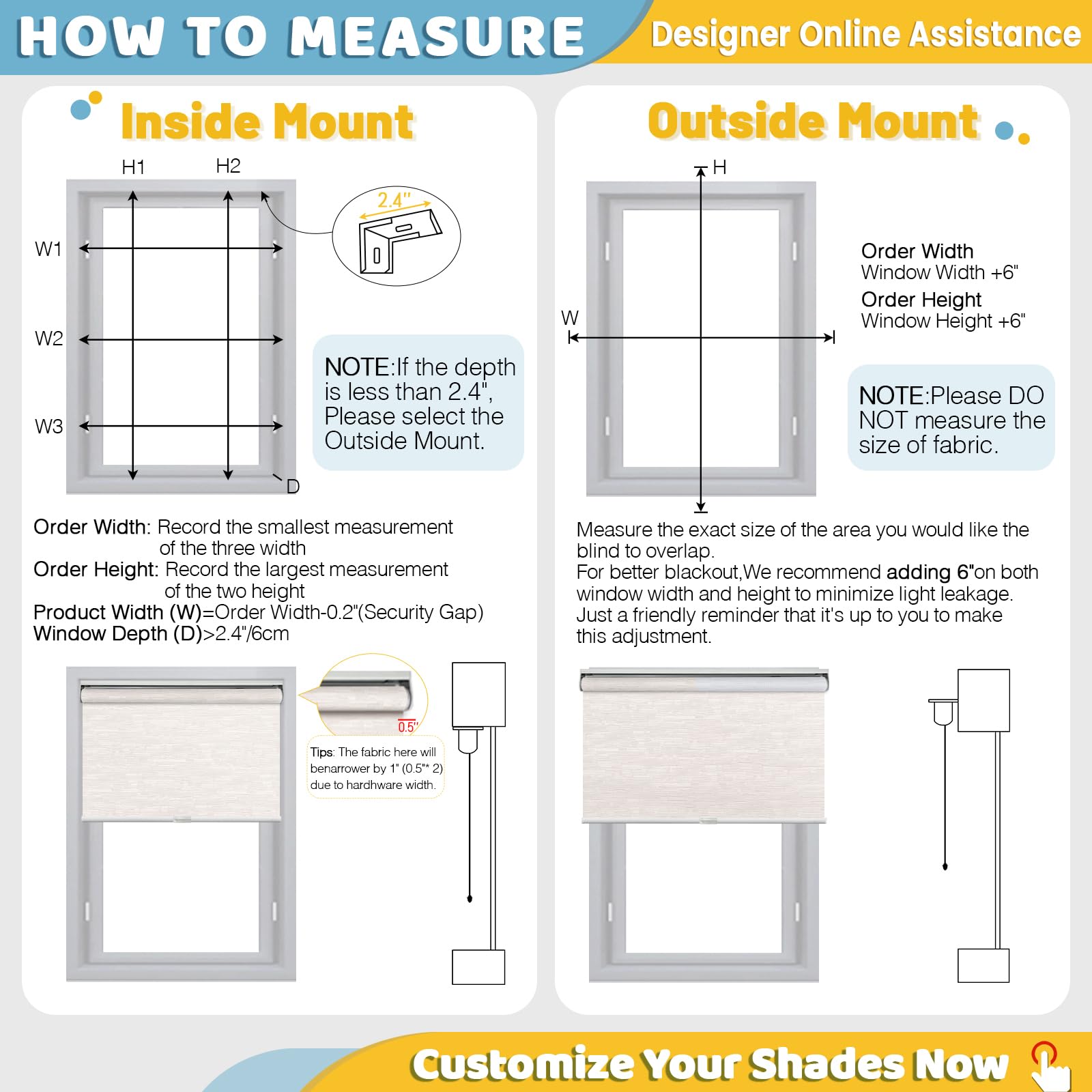 For Inside Mount,we will deduct 1/4" from order width as security gap, for example, you select inside mount and 60” width for your order, the final width of the shade will be 59 3/4”, because if we don’t make this 1/4” deduct, the shade may not fit into the window frame. Please read this notice carefully, if you have misunderstood the product description and believe that you have received a finished product that is shorter than the width you ordered, we will not accept your return on this basis.