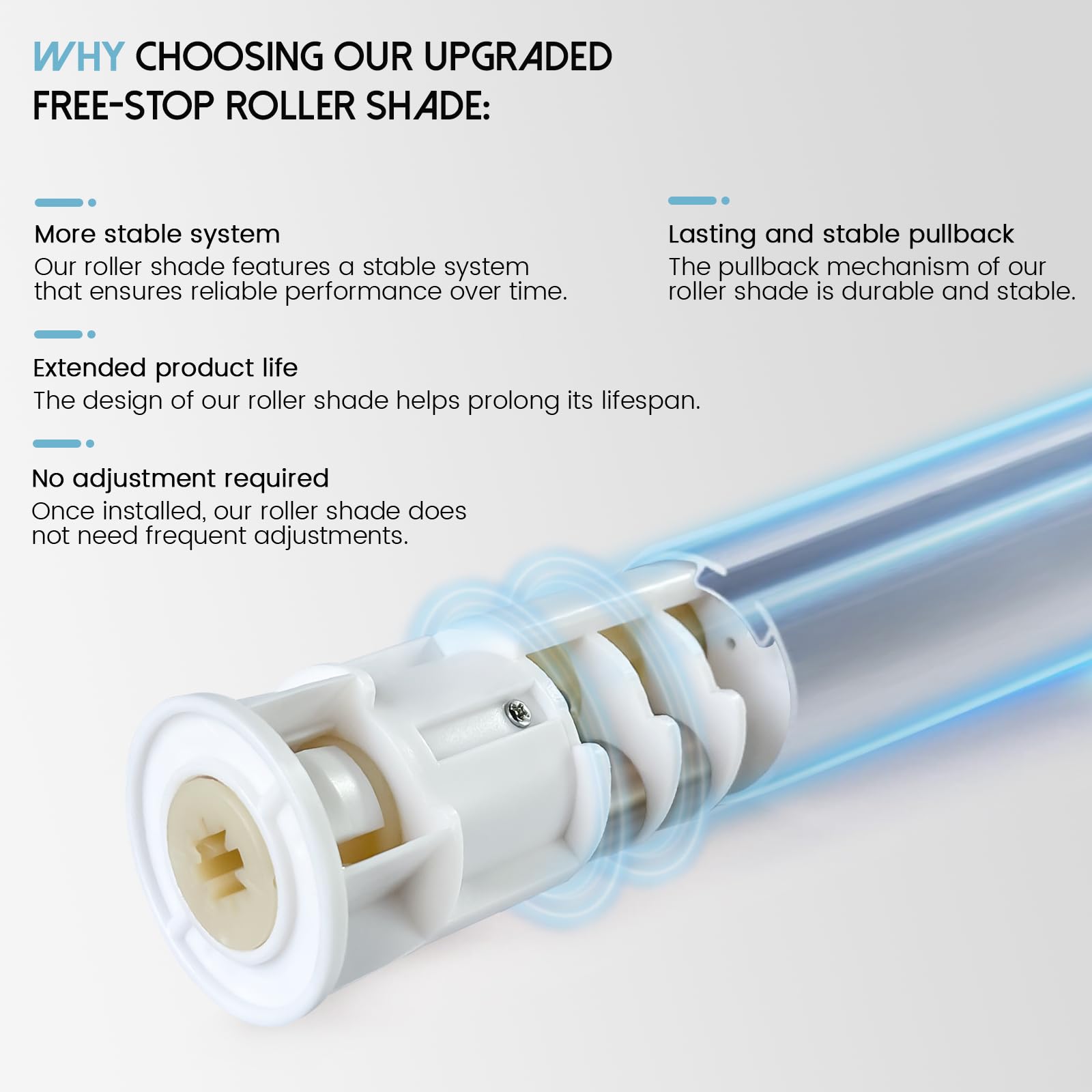 VIDEMA Cordless Spring Roller Shade – Custom Size, Touch-Lift & Stop-Anywhere, Made-to-Measure