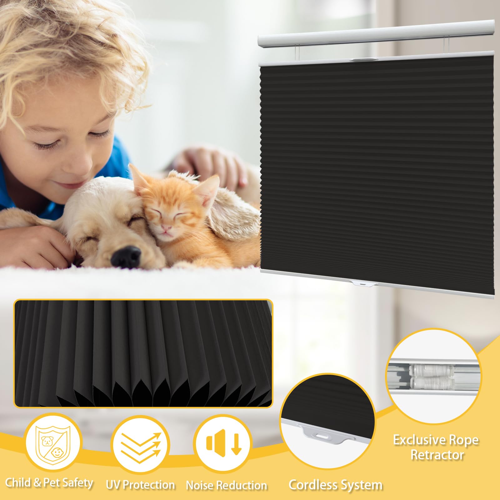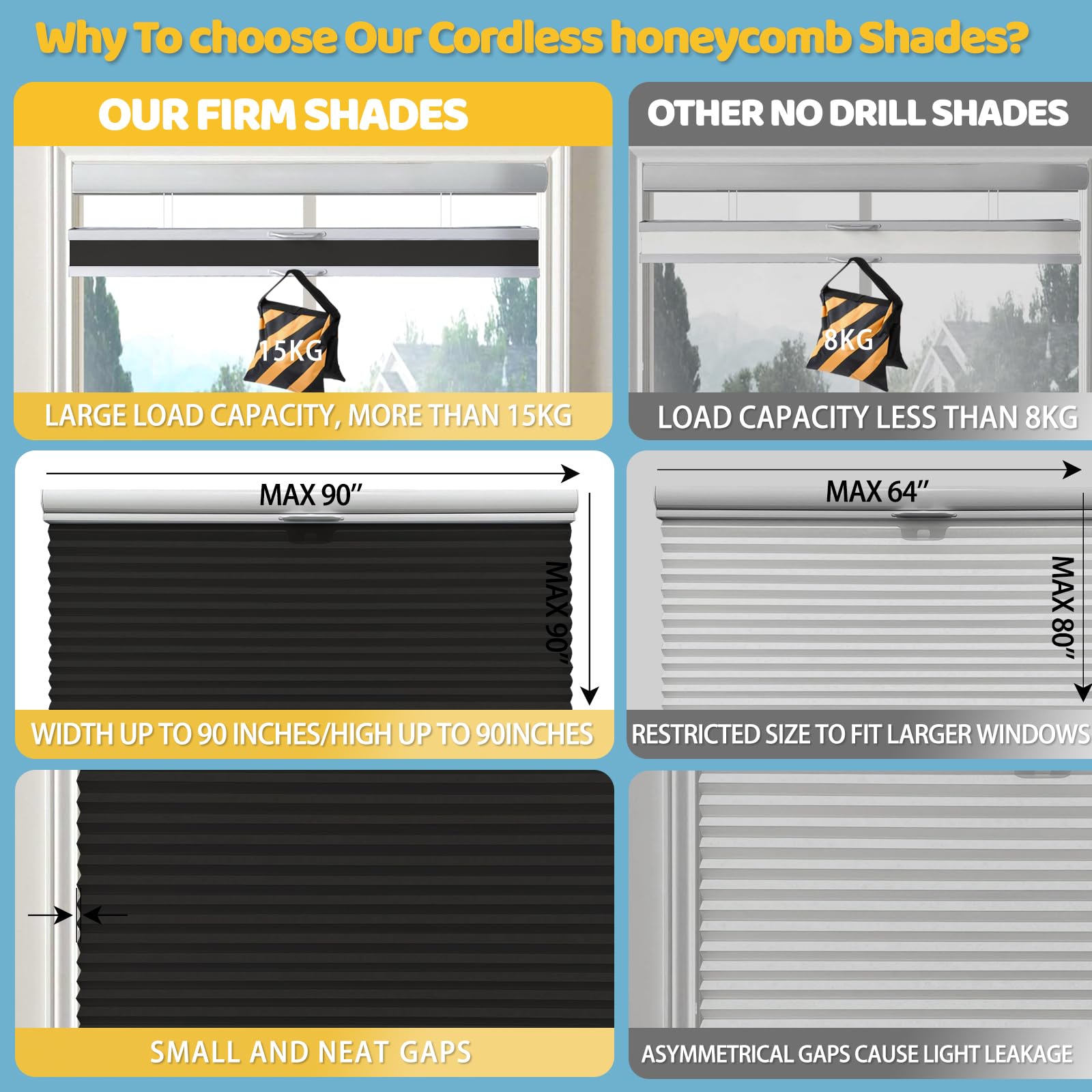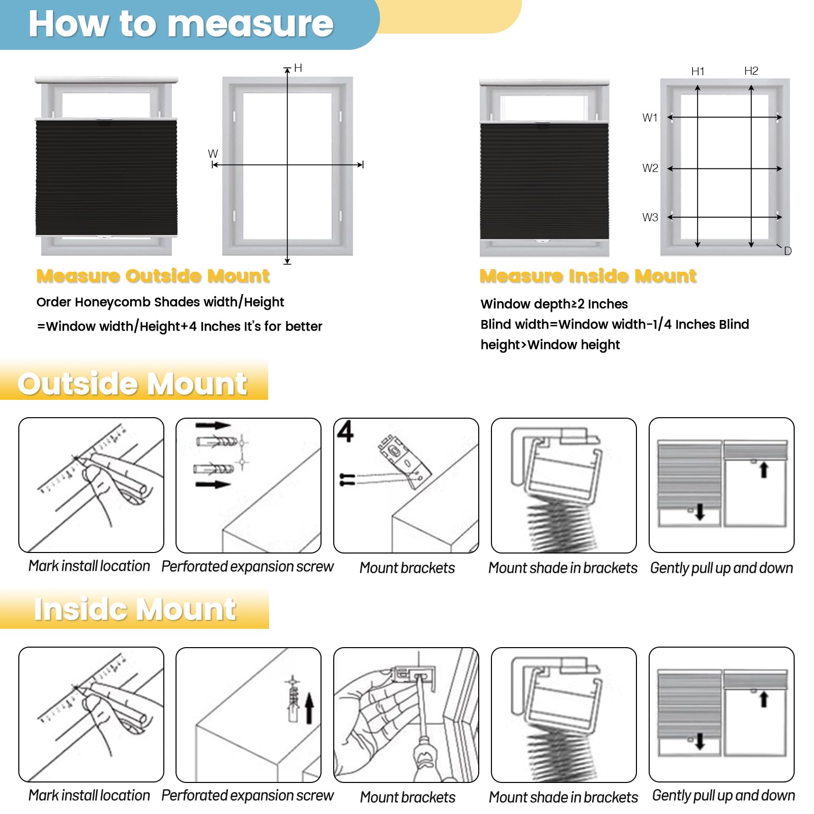 VIDEMA Manual Top-Down Bottom-Up Cellular Honeycomb Shade – Single/Double-Cell Fabric, Cordless Spring Stop-Anywhere, Minimal Light Leak When Inside Mount, Made-to-Measure