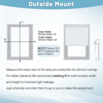 Outside mount blinds and shades are installed over the window on brackets attached to the wall or window frame. We recommend adding a minimum of 4" to both your width and height measurements to reduce potential light gaps on sides of the window.